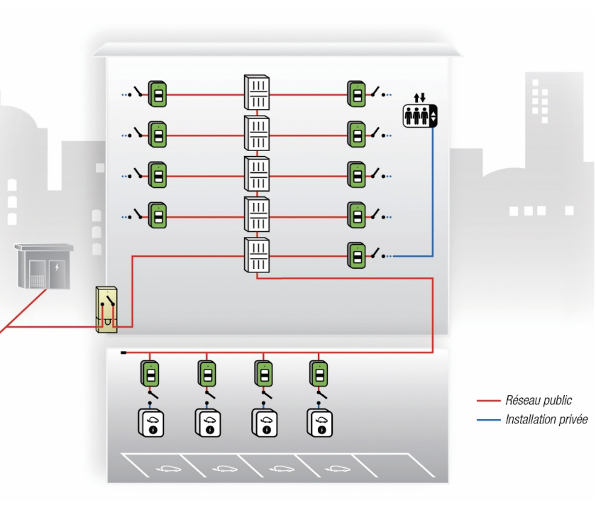 Son principe est simple : reproduire dans un parking collectif le schéma d’alimentation des logements d’un immeuble.